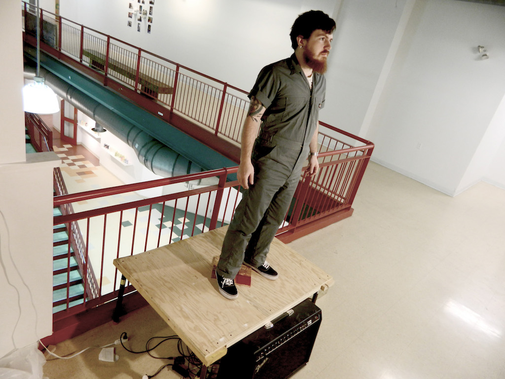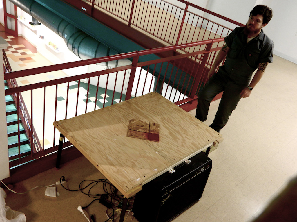 This installation of a stage that would blast a spot light on actors when they ascended the stairs. A round of applause would be triggered, and when the applause was finished, the light would turn off.